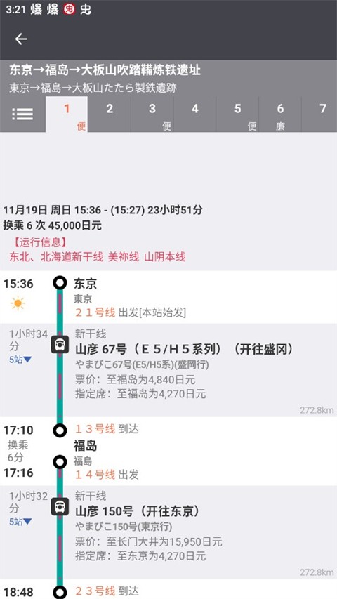 5. 指定座位(指定座位/自由座位/头等车),设置显示顺序(所需时间/费用/换乘金额)。